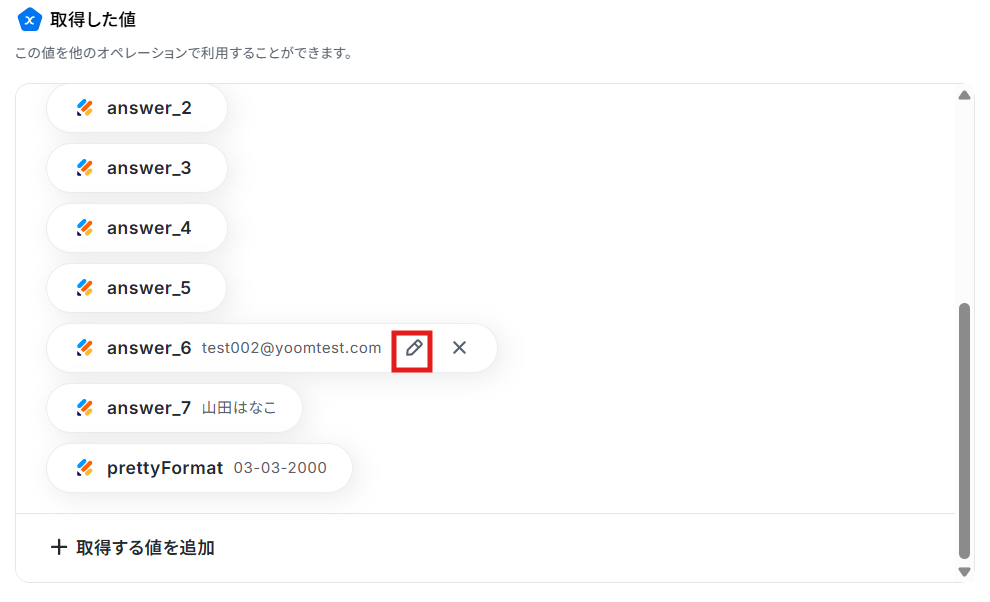 Typeform、AWeberのそれぞれとYoomを連携してください。 トリガーの値を取得する方法は「「取得する値」を追加する方法 」を参照ください。