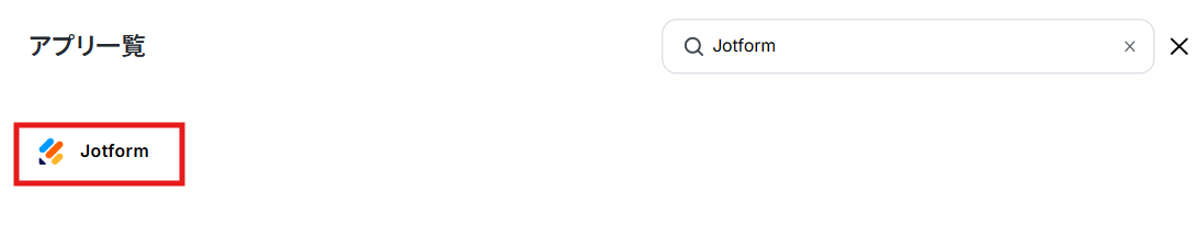 新規接続をクリックし、アプリのメニュー一覧からJotformを検索して選択します。