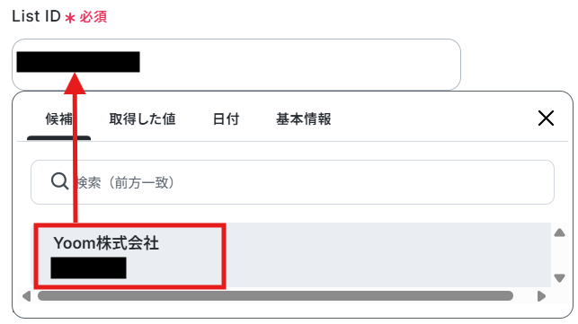 同様に、List IDも選択します。