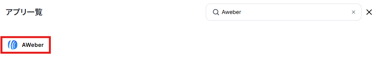 新規接続をクリックし、アプリのメニュー一覧から Aweberを検索して選択します。
