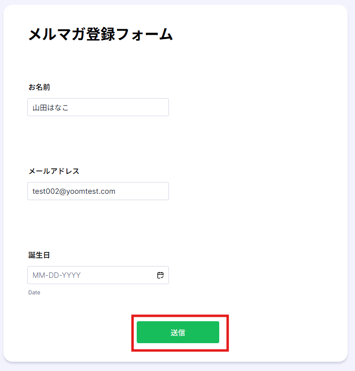 Webhookの設定が完了したら、連携するフォームにテスト回答を送信します。