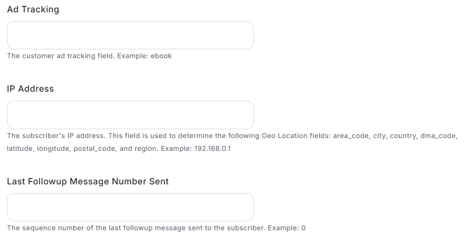 AWeberで購読者を作成する際に、メールアドレスや名前といった基本的な項目以外に、メモ(Misc Note)やカスタムフィールド(Custom Fields)へ特定の情報を登録できます。Jotformから取得したどの情報を、AWeberのどの項目に登録するかを任意で設定してください。 ■注意事項