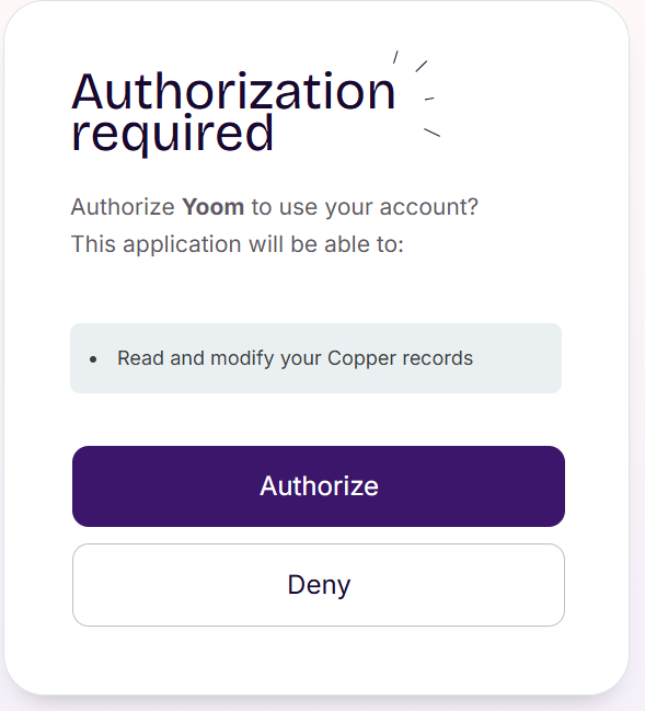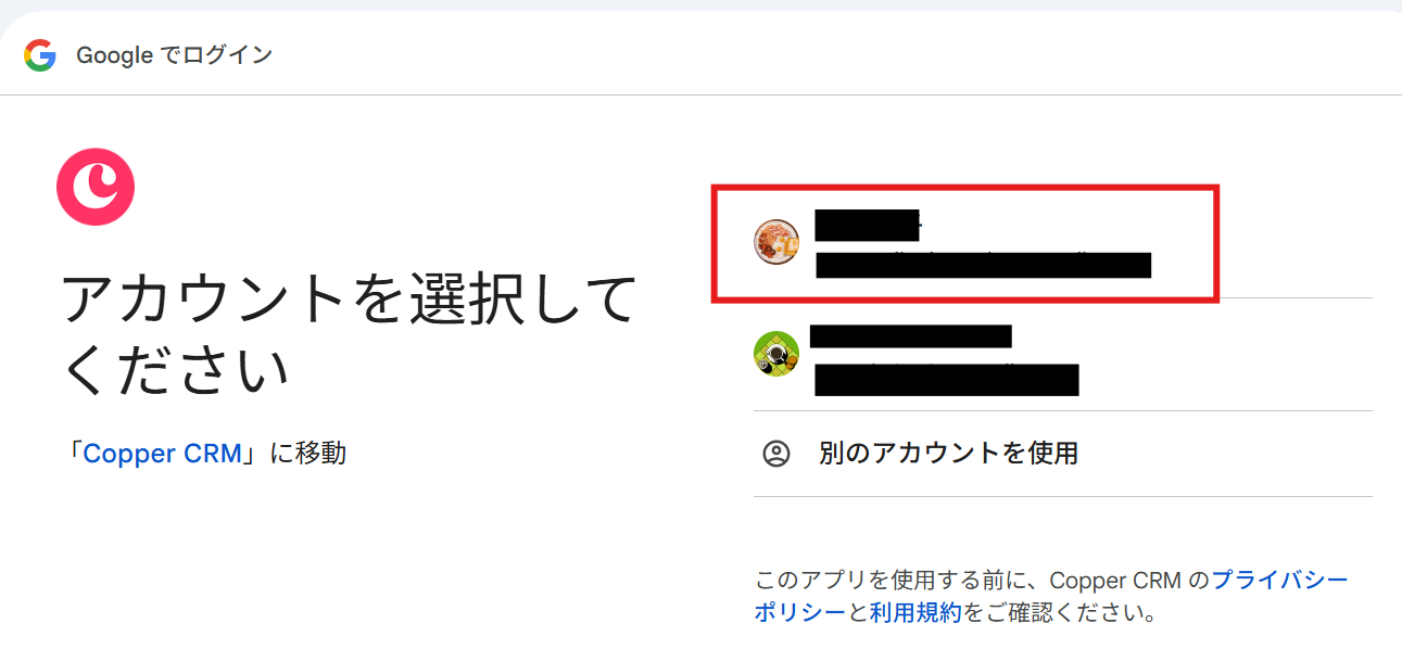 マイアプリ>新規接続より「Copper」を検索、クリックすると、以下のページが表示されます。