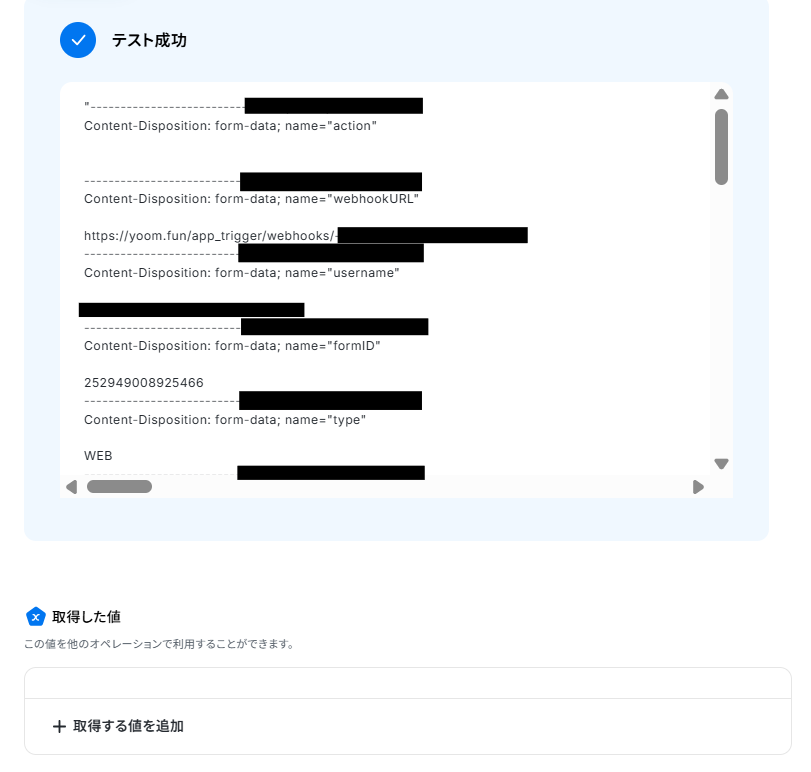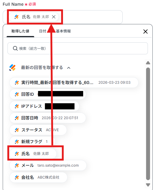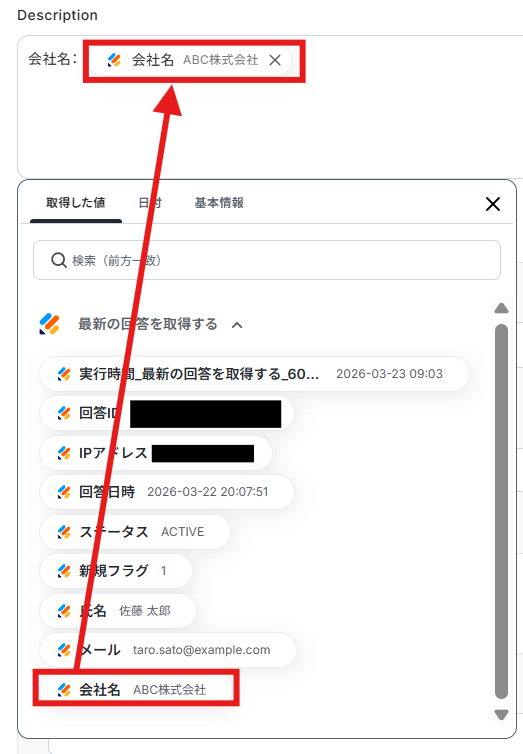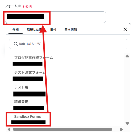 「フォームID」は候補から最新の回答を取得したいフォームを選択します。