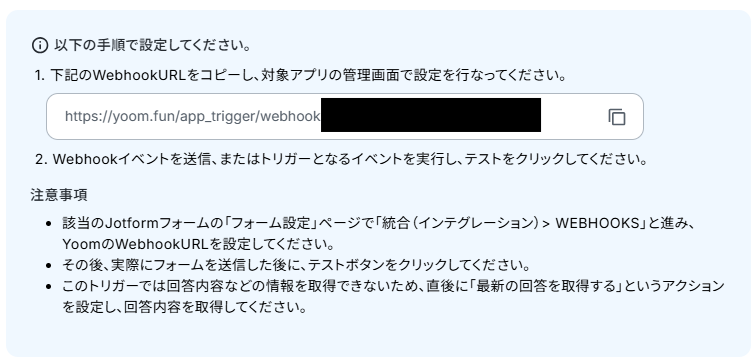 画面注釈に沿ってWebhookの登録を行ってください。