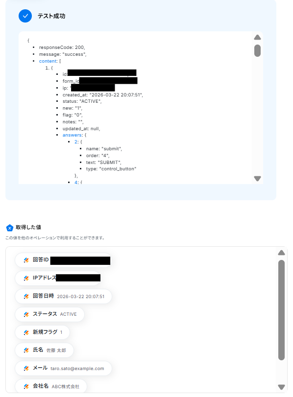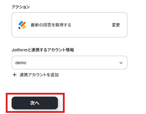 ステップ4:Jotformの該当フォームから最新の回答を取得する