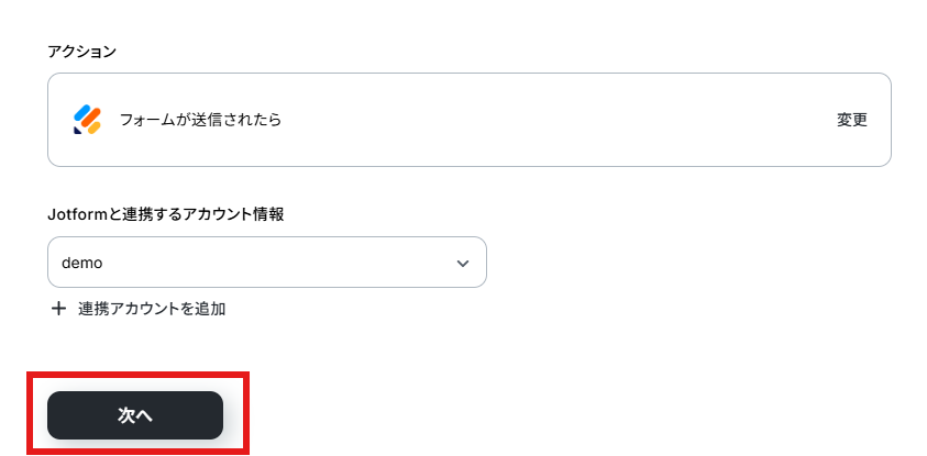 ステップ3:Jotformのトリガー設定を行う