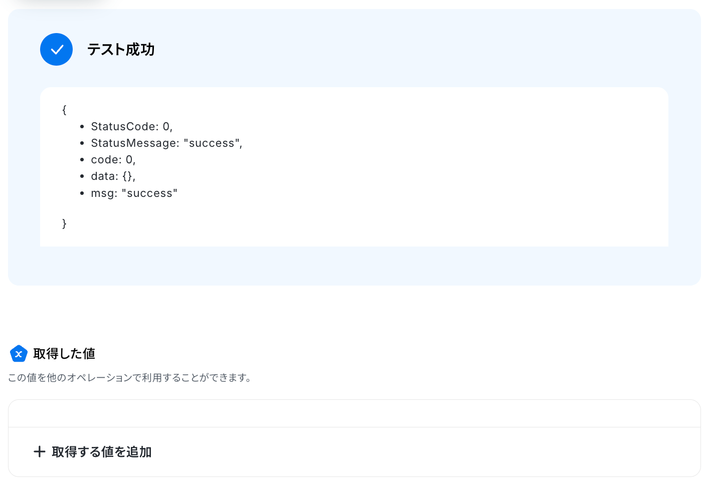 以下の取得した値は、そのまま後続のステップで利用できます。