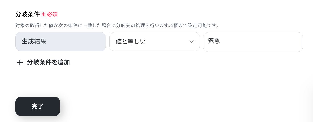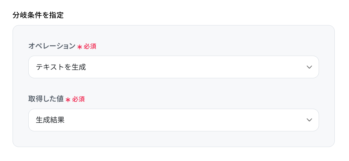 続いて、前のステップでテキスト生成した値を利用して、分岐条件の設定を行いましょう。