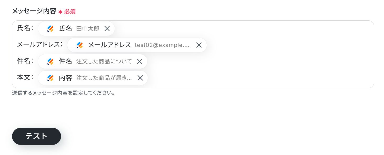 入力が完了したら「テスト」をクリックして、設定した送信先にメッセージが正しく届くか確認しましょう。
