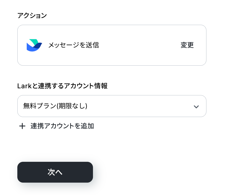 Larkと連携するアカウント情報に問題がなければ、「次へ」をクリックします。