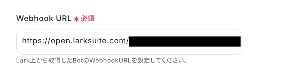 WebhookURLの取得方法は、Lark DeveloperのカスタムBot設定ページからご確認ください。
