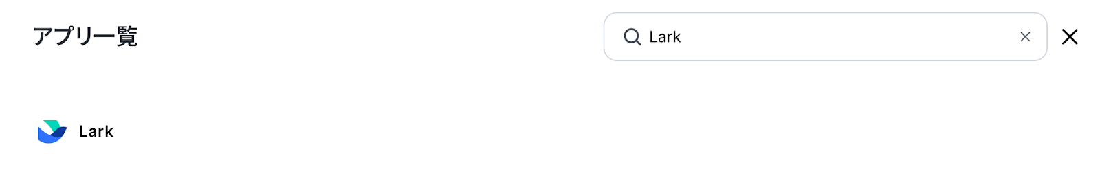 新規接続をクリックしたあと、アプリのメニュー一覧が表示されるのでLarkと検索し、対象アプリをクリックしてください。