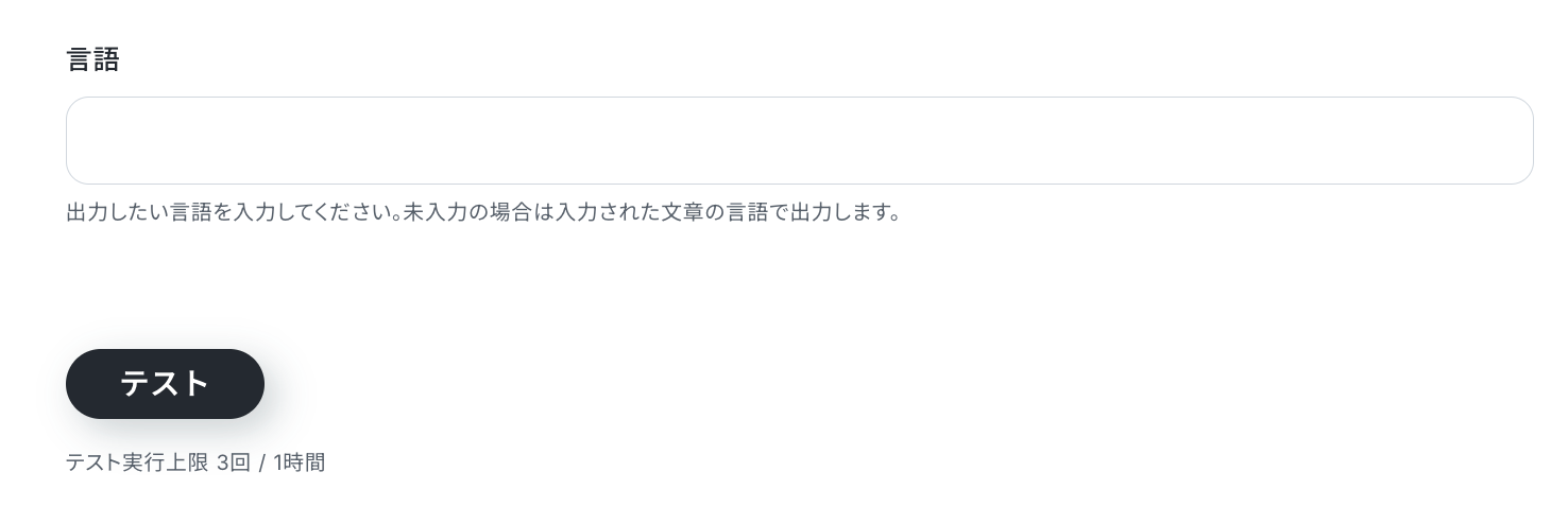 入力が完了したら「テスト」をクリックして、設定した内容でテキストが正しく生成されるか確認しましょう。