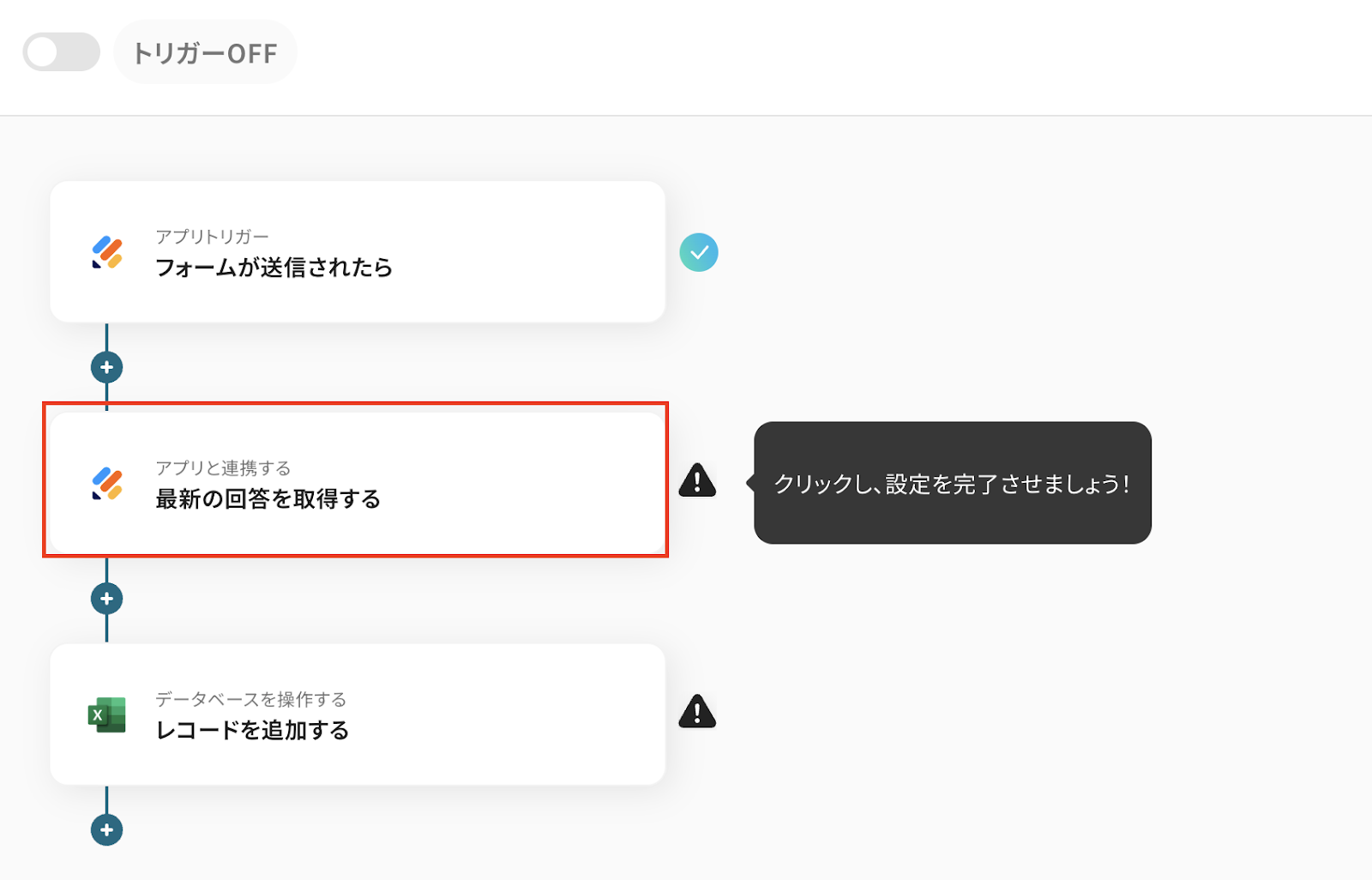 今回は「Jotformで回答されたら、Microsoft Excelにレコードを追加する 」フローを作成していきます! 作成の流れは大きく分けて以下です。