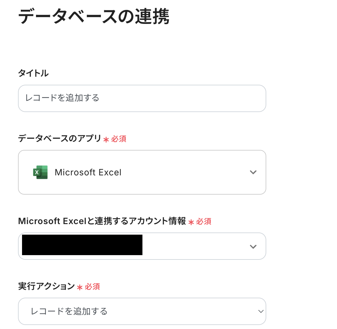 ステップ5:Microsoft Excelのアクションを設定しよう(レコードを追加する)