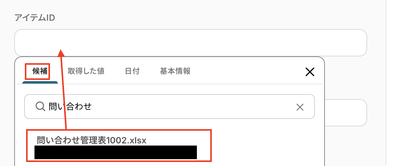 アイテムIDも同様に候補から連携したいデータベースを選択しましょう。