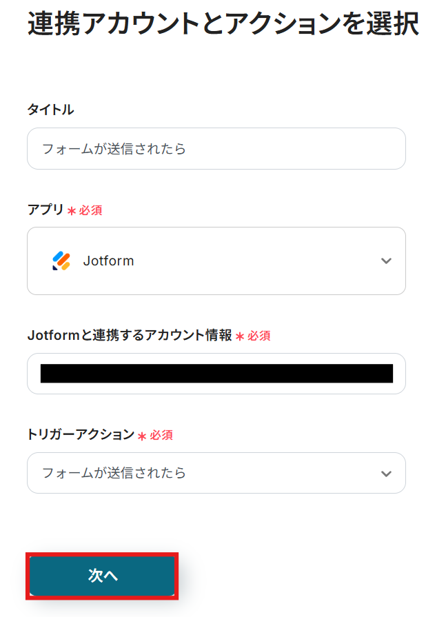 ステップ3:Jotformのトリガー設定