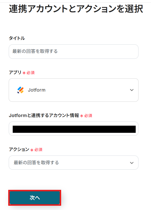 ステップ4:Jotformのフォーム回答を取得するアクションの設定