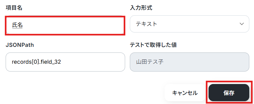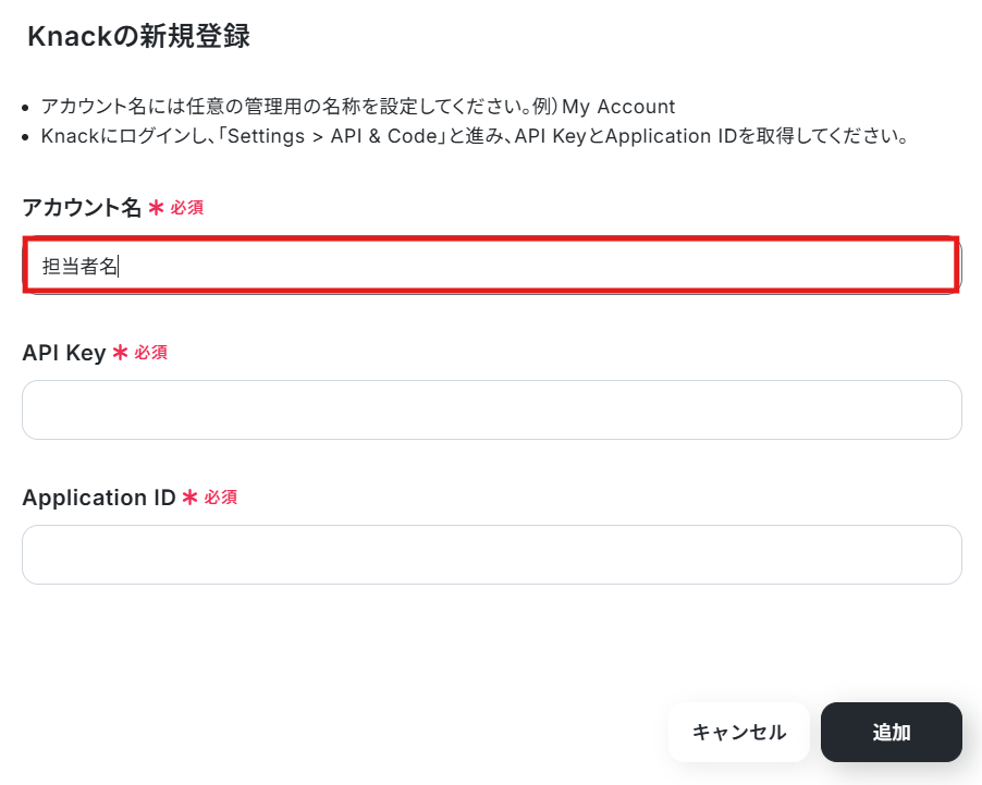 kintoneと連携する際に、ご利用の環境に応じた任意のサブドメイン名を設定してください OCR機能のアクション設定で、画像やPDFファイルから読み取りたい任意の抽出項目を設定してください Knackにレコードを追加する際に、データを登録したい対象のObject IDとField IDを任意で設定してください ■注意事項