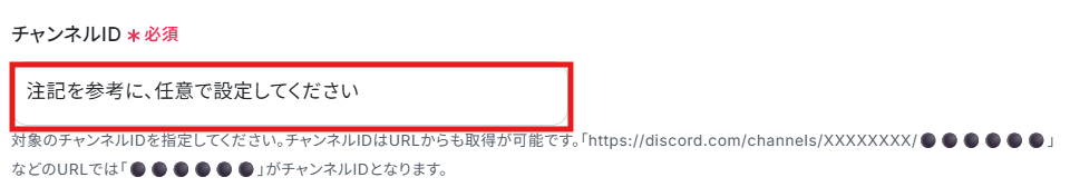 メッセージを送るチャンネルを設定します。 注記を参考にして、チャンネルIDを入力してください。