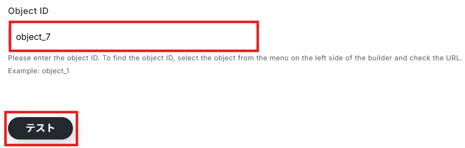 連携するObject IDを入力して、「テスト」をクリックしてください。