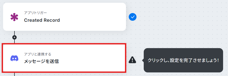 ステップ4:Discordのアクション設定 次に、Knackでレコードが追加されたことをDiscordに通知する設定を行います。 「メッセージを送信」をクリックしてください。