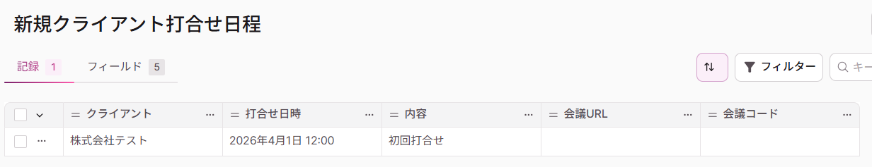 Knackでのデータ管理とGoogle Meetでの会議設定をそれぞれ手動で行っている方 KnackとGoogle Meetの連携により、会議設定の業務を効率化したいと考えている方 手作業による情報転記のミスを減らし、正確な情報管理を実現したい方 ■このテンプレートを使うメリット