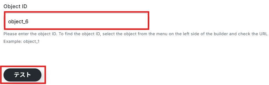 連携するObject IDを入力して、「テスト」をクリックしてください。