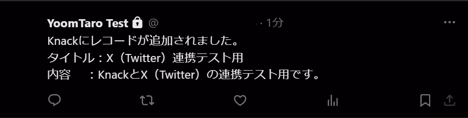 これでKnackにレコードが新規作成されたことをYoomが検知したら、自動で内容を反映したポストがX(Twitter)に投稿されるようになりました。