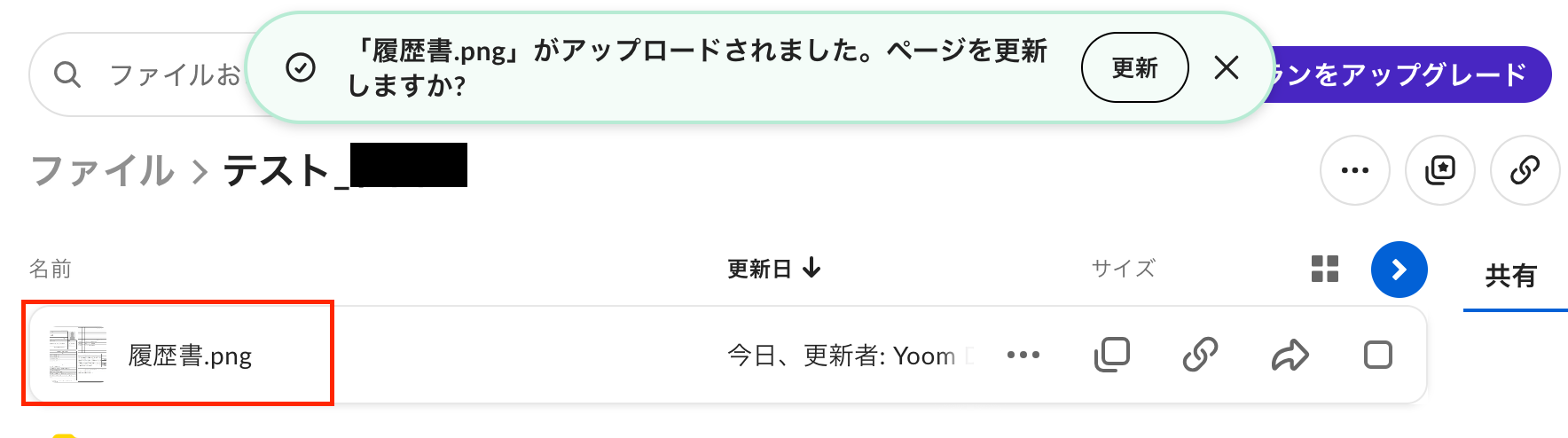 アップロードしたら、Yoomの画面で「テスト」をクリックしましょう!