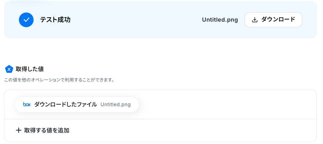 ※ 取得した値 とは? トリガーやオペレーション設定時に、「テスト」を実行して取得した値のことを指します。 後続のオペレーション設定時の値として利用でき、フローボットを起動する度に変動した値となります。