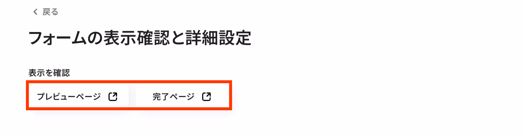 下記のボタンで、実際のフォームのプレビューや完了ページを見ることができます。