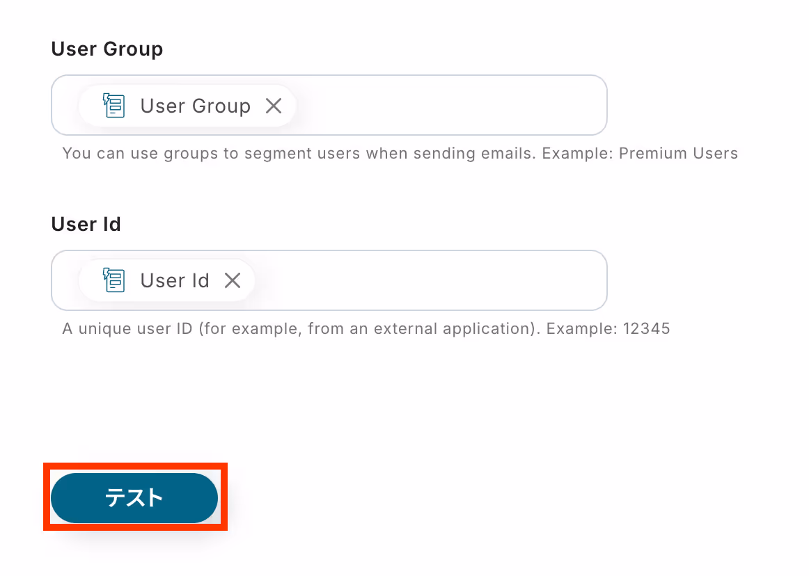 (取得した値に入力したデータは、以降の設定でテストを行う際に各アプリに追加されます)