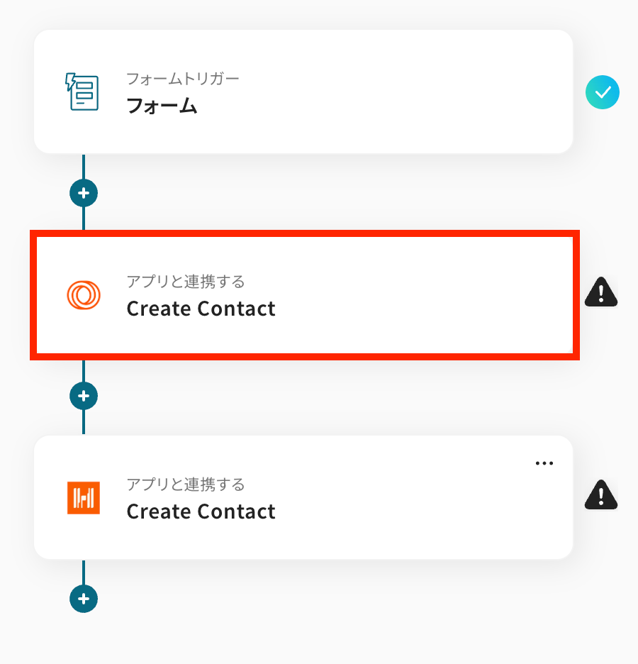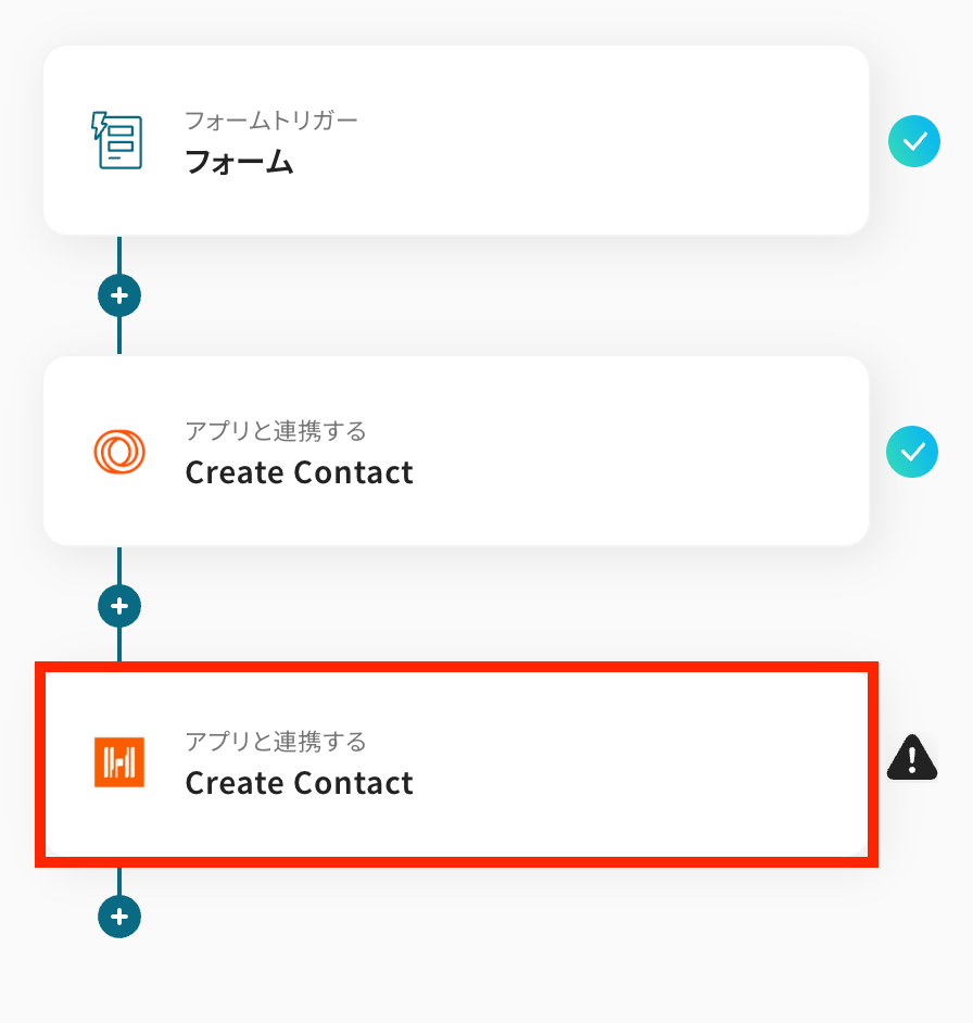 同じく、フォームの回答内容を利用して、HarvestにContactを作成する設定を行います。 最後の赤枠をクリックしましょう。