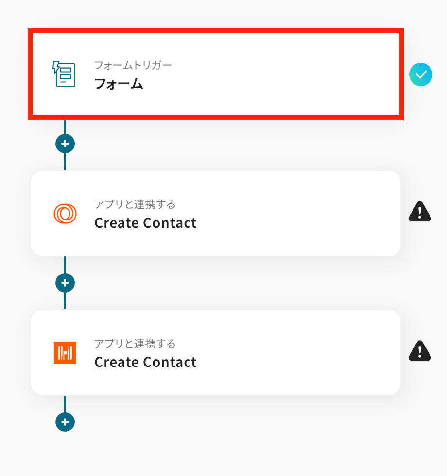 今回はフォームで回答が送信されたら、LoopsとHarvestにContactを作成するフロー を作成していきます! 作成の流れは大きく分けて以下です。