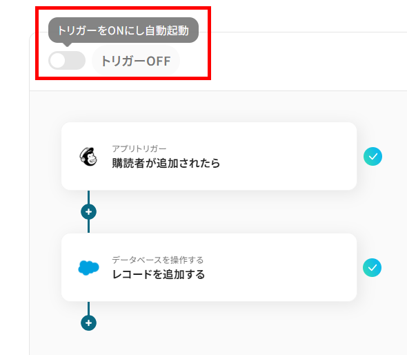 このフローはMailchimpのデータをSalesforceに直接連携するシンプルな構成で設定も簡単です。