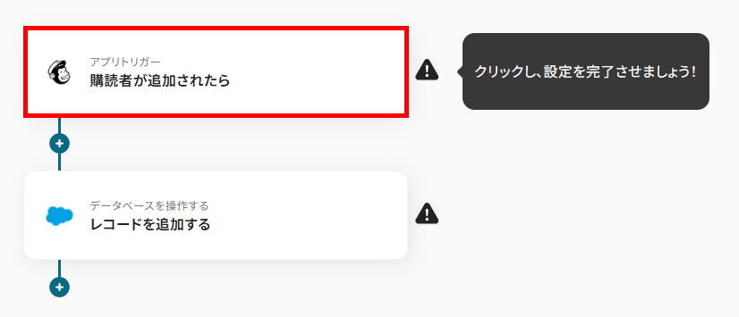 - Mailchimpのトリガー設定およびSalesforceのアクション設定