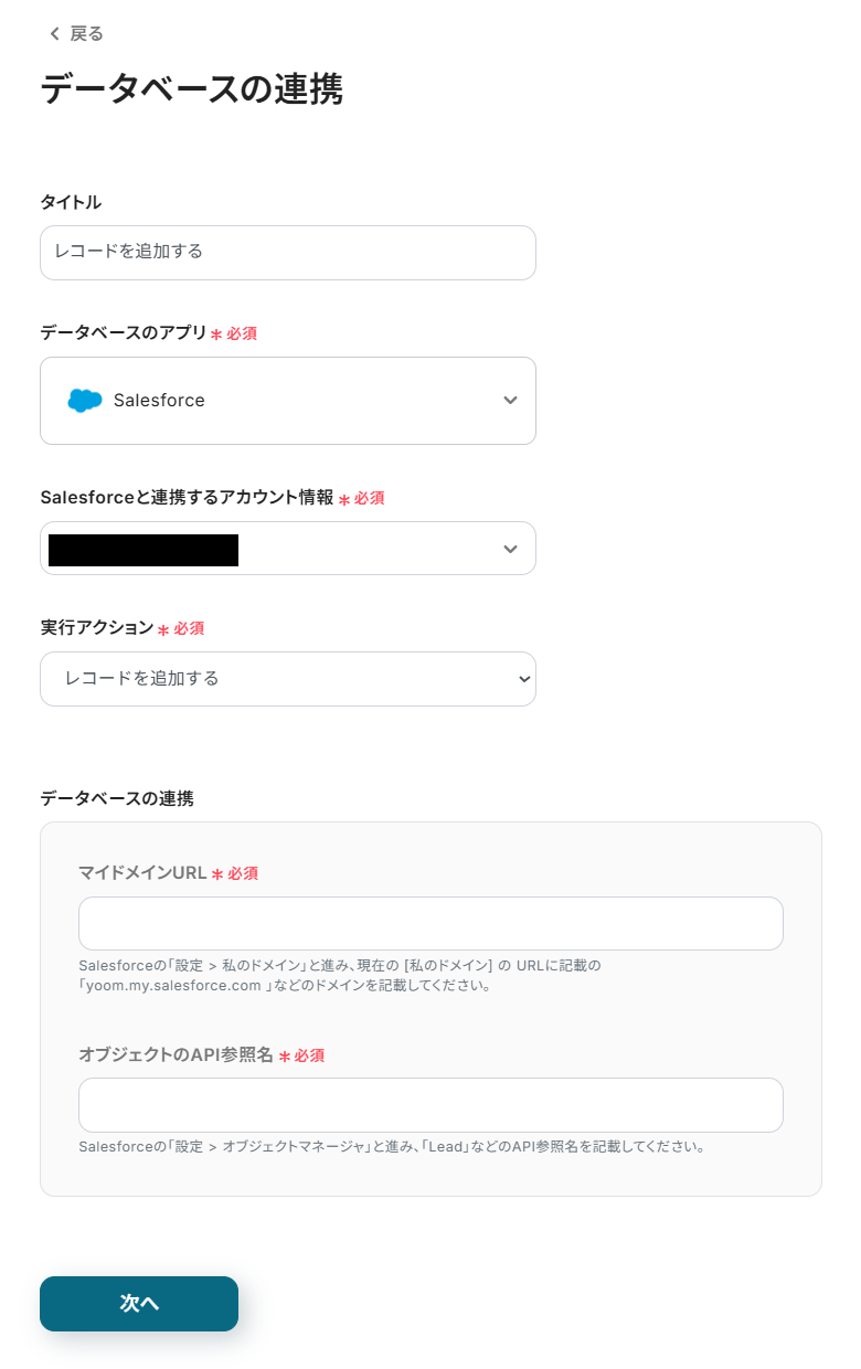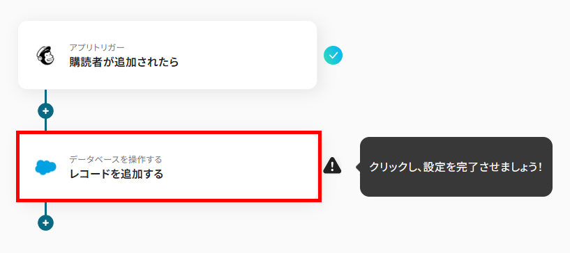 次に、Mailchimpから取得した値を利用して、Salesforceにレコードを追加する設定を行います。