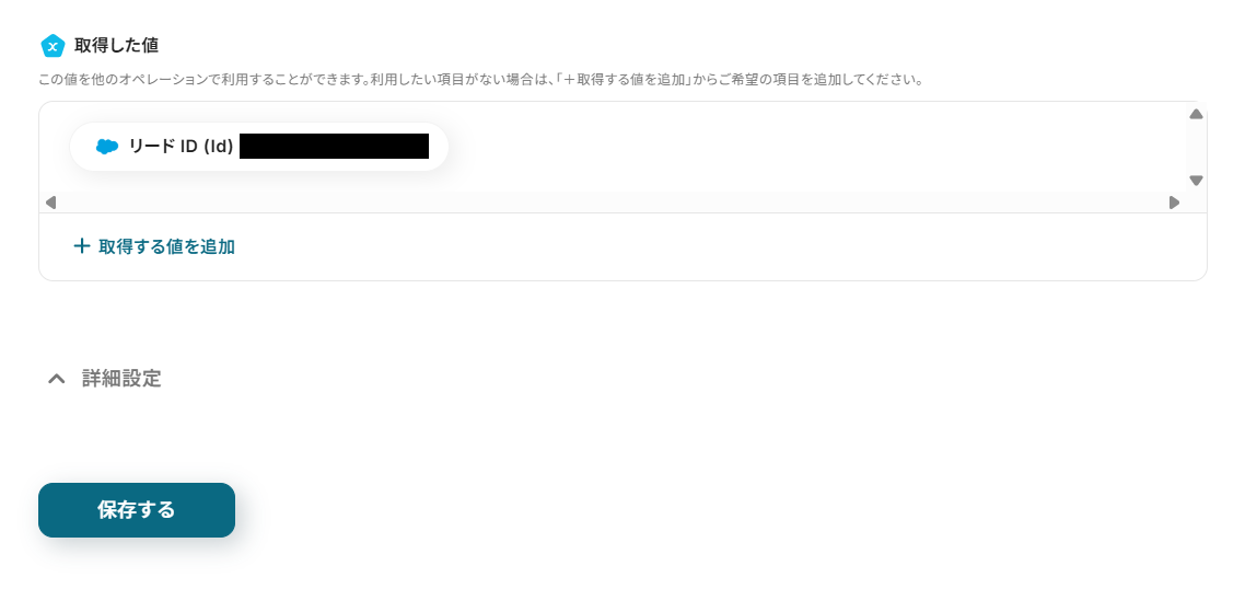 表示された該当の項目に、登録したい値を設定することで、連携の設定が完了します。