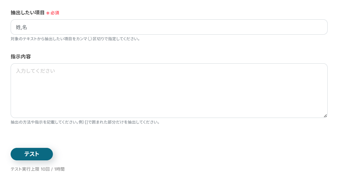 抽出したい項目を以下のように設定したら、テストを行いましょう。