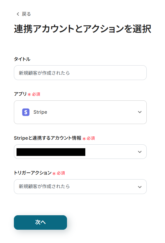 ここでは、Stripeで顧客が作成されたらフローボットが起動するように設定を行います。