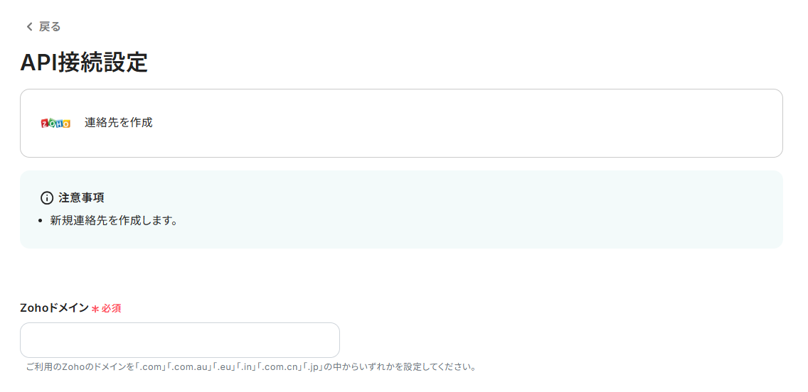 まず、Zohoドメインを注釈に沿って入力してください。
