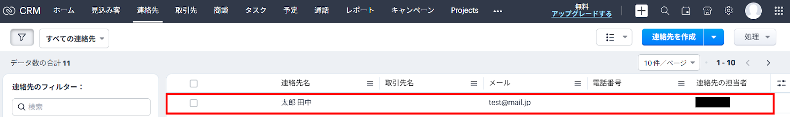 テストが成功すると、Zoho CRMに連絡先が作成されるので確認してください。