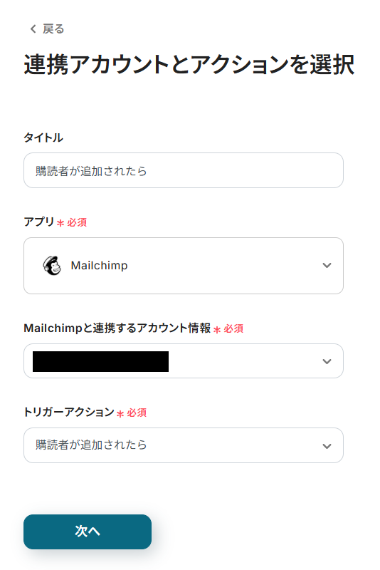 ステップ3:Mailchimpのトリガー設定