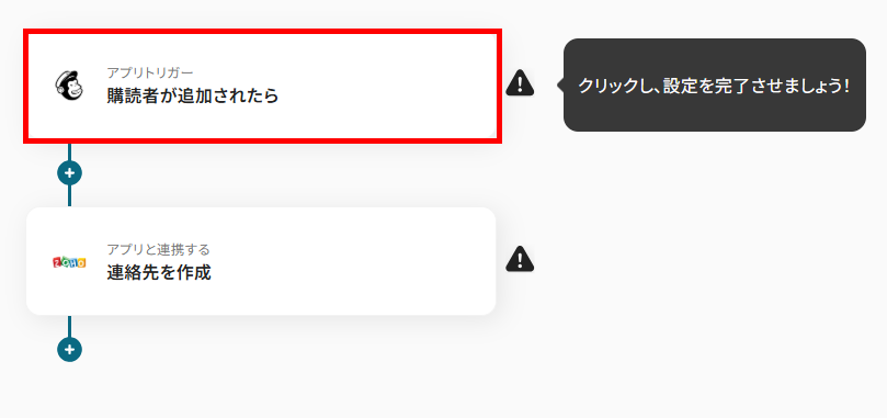 - ここでの設定により、Mailchimpに購読者が追加されると、フローボットが起動します。