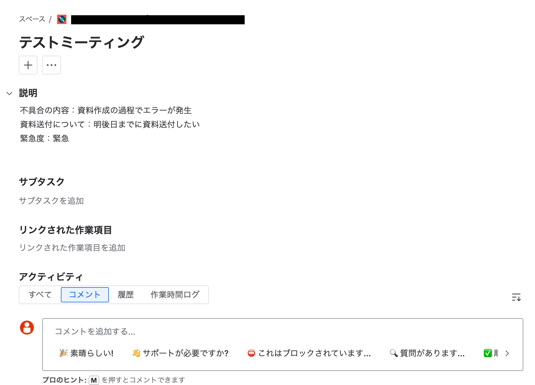テスト成功で新規の課題が作成されています!