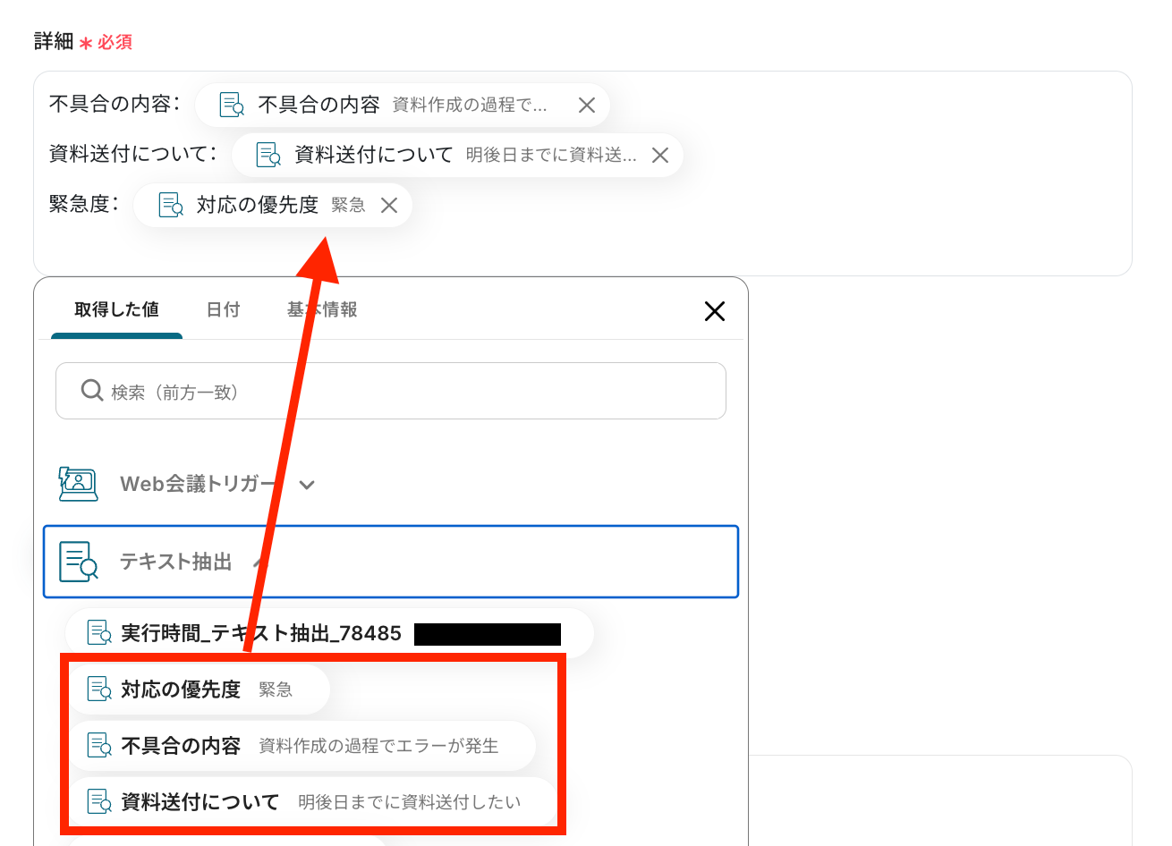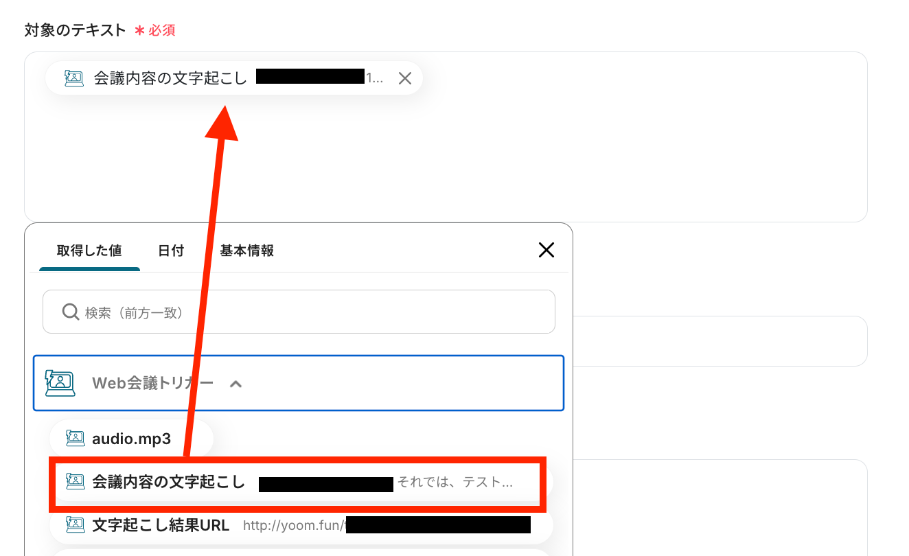取得した値の中から、抽出したい対象のテキストを選択します。