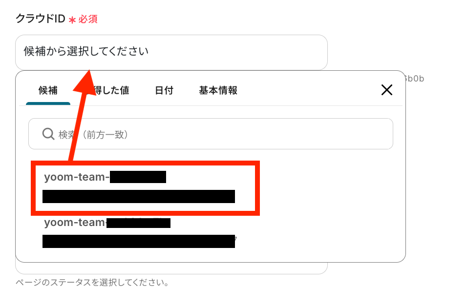 - Confluenceでページを作成するアクションでは、ページを作成したい任意のクラウドIDやスペースIDを設定してください
