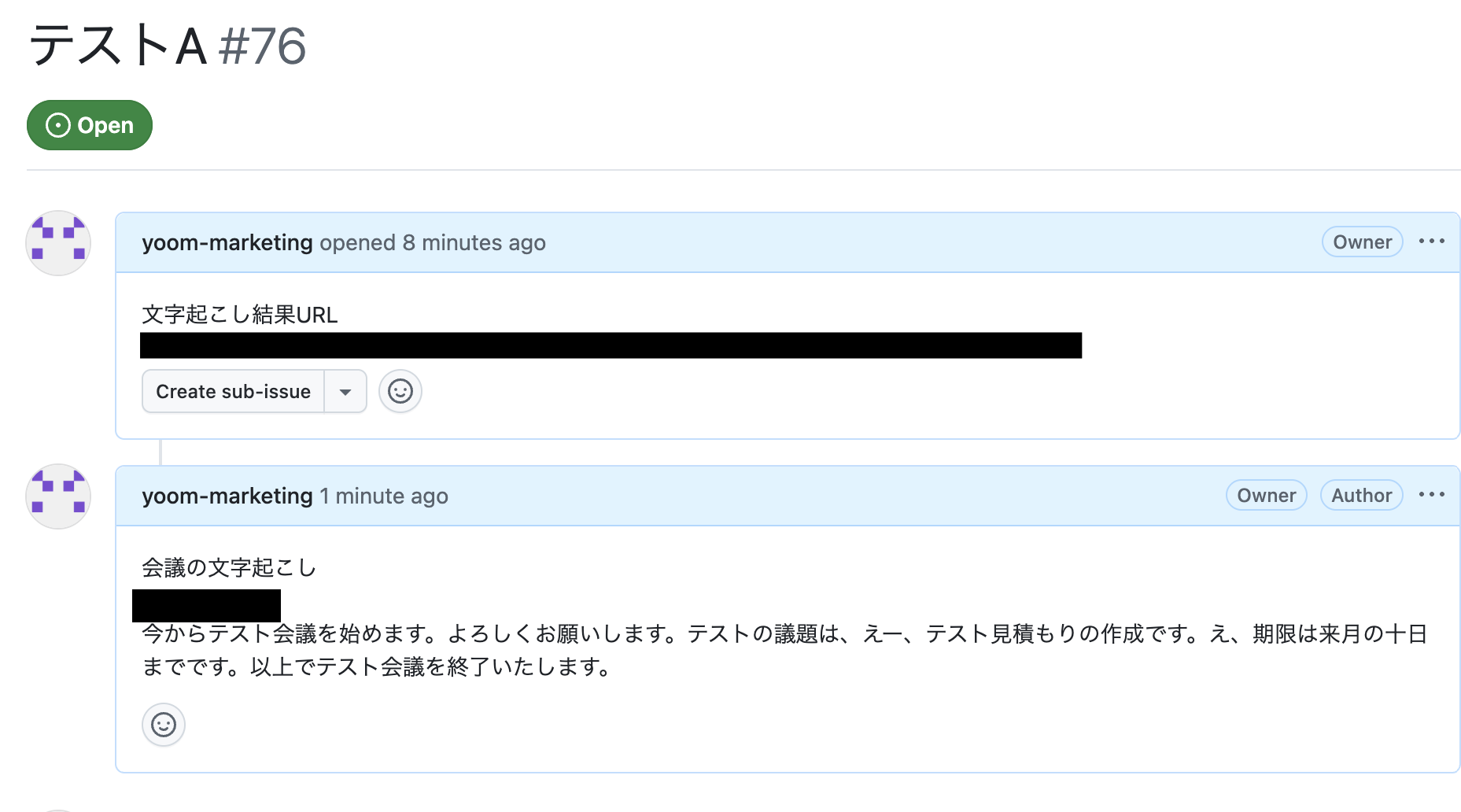 「オンライン会議後の文字起こし結果を、手作業でGitHubのIssueに転記するのが面倒…」